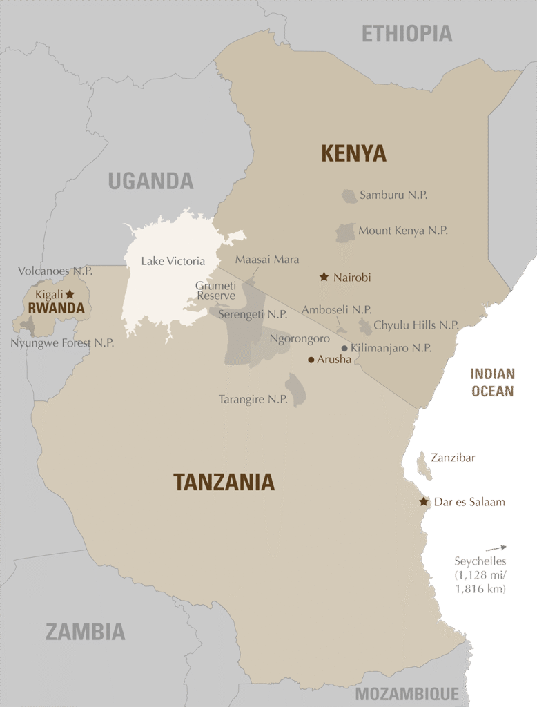 Our Kenya tours combine easily with our tours in Tanzania, which feature safaris in the Serengeti, Tarangire and Ngorongoro Crater, as well as time in Zanzibar. We can also customize tours to include time in Seychelles and other regional destinations.